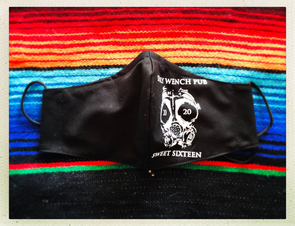 Featuring our 2020 Sweet Sixteen anniversary design, these masks are made of double layered, high quality cotton, and a sewn in 4 inch adjustable nose strip. They have a 42 inch nylon cord with toggle that allows the mask to hang around your neck for easy on/off and for you to adjust for a perfect fit around your head with no pressure of elastic around your ears.